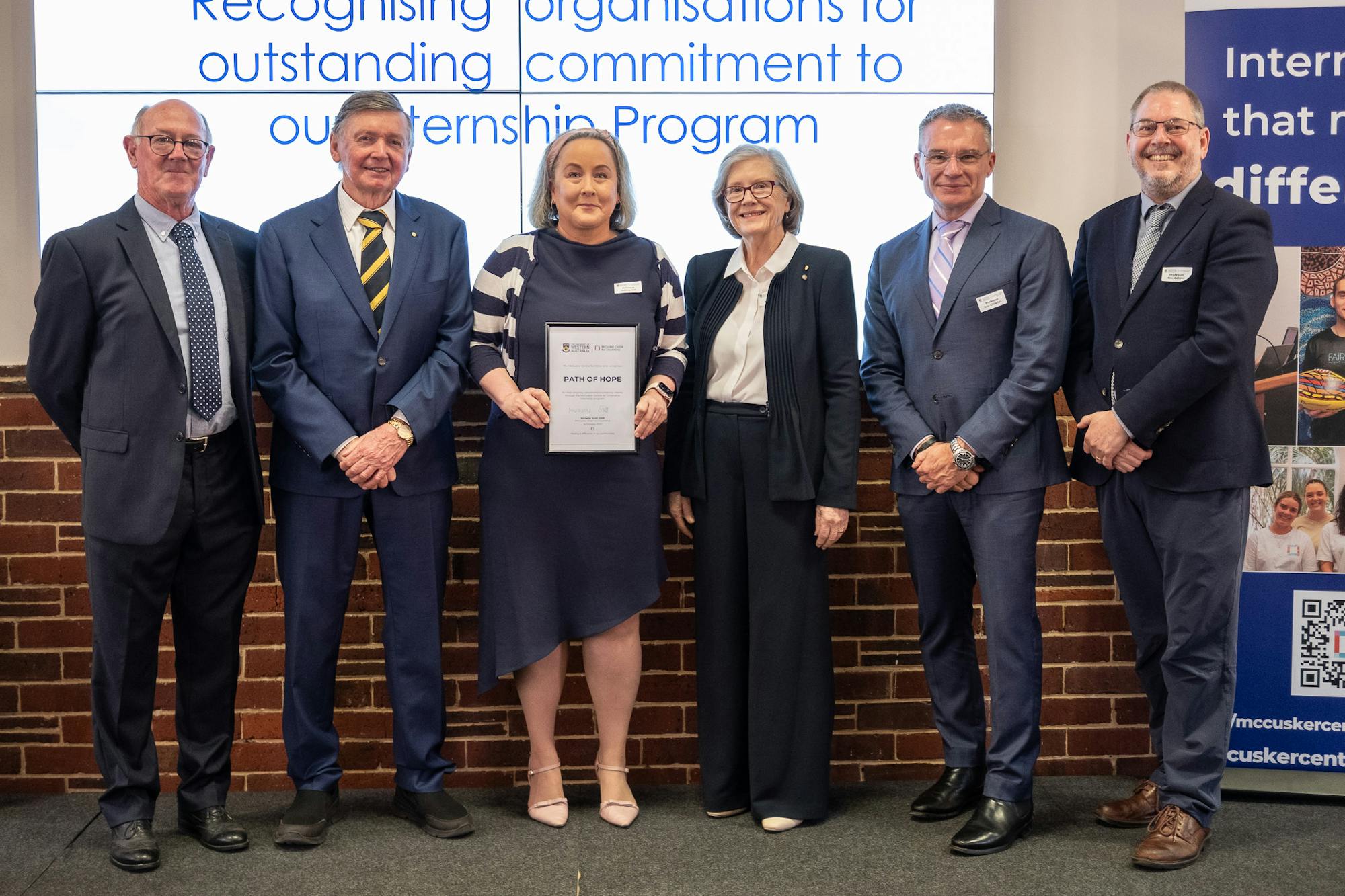 Path of Hope has been recognised for making a significant contribution to the McCusker Centre for Citizenship’s award-winning internship program for UWA students.