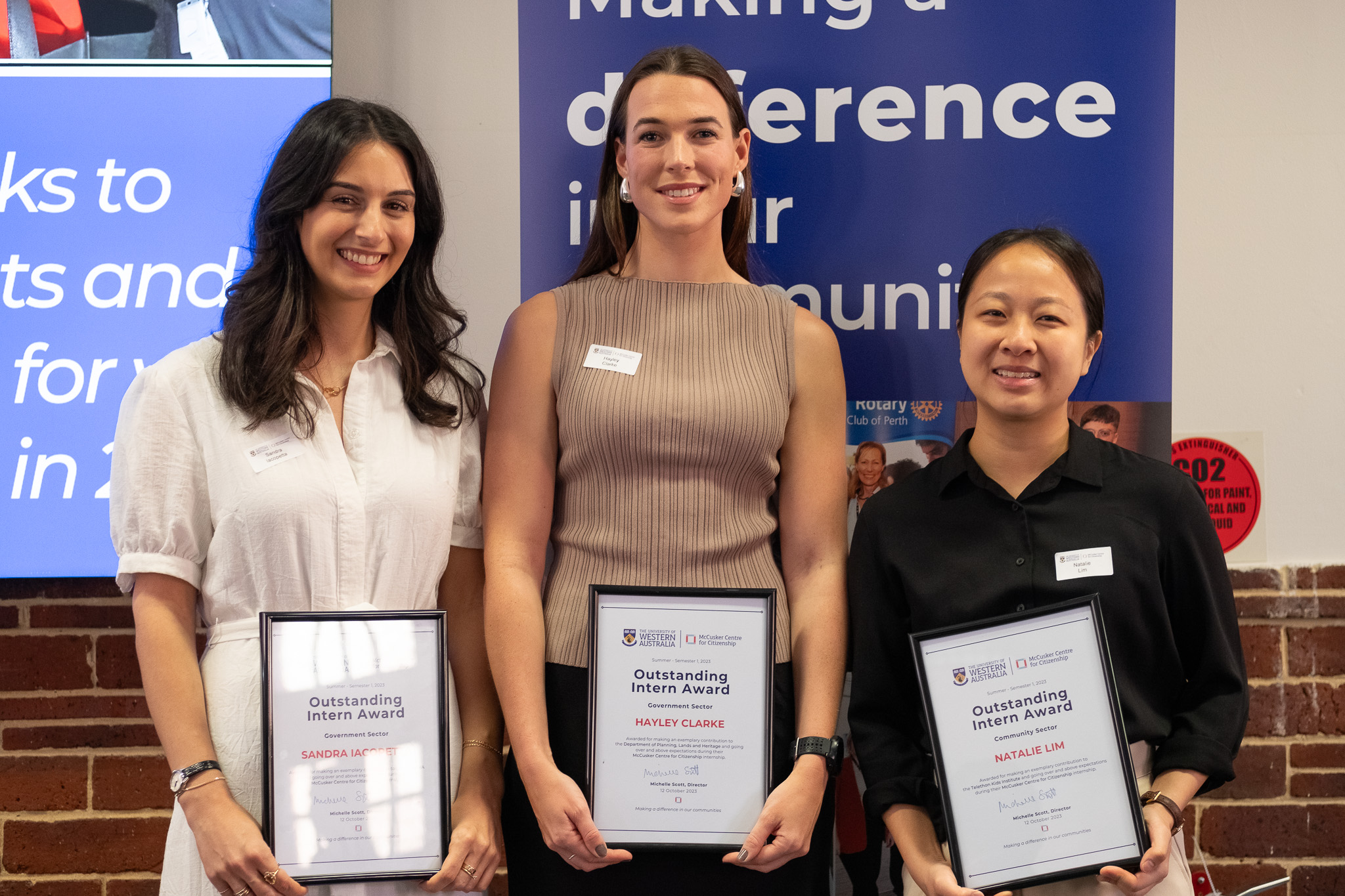 “Our end-of-year event is an important opportunity to celebrate the achievements of the Outstanding Intern Award recipients and nominees,” said Michelle Scott OAM, McCusker Centre for Citizenship Director.