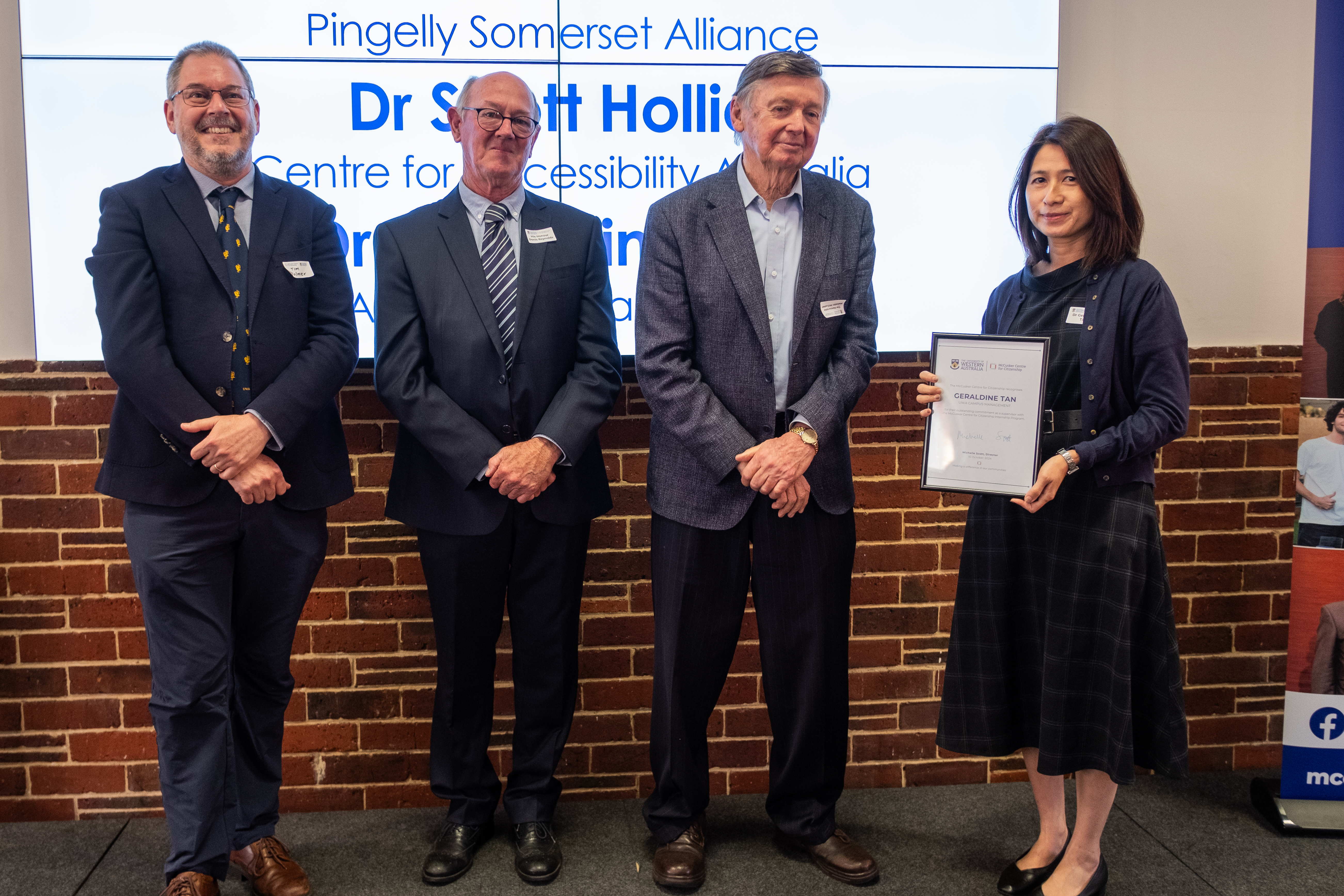 Geraldine Tan, Sustainability Manager (Environments and Governance) with UWA Campus Management, has been recognised for her outstanding contribution to the McCusker Centre for Citizenship’s internship program.