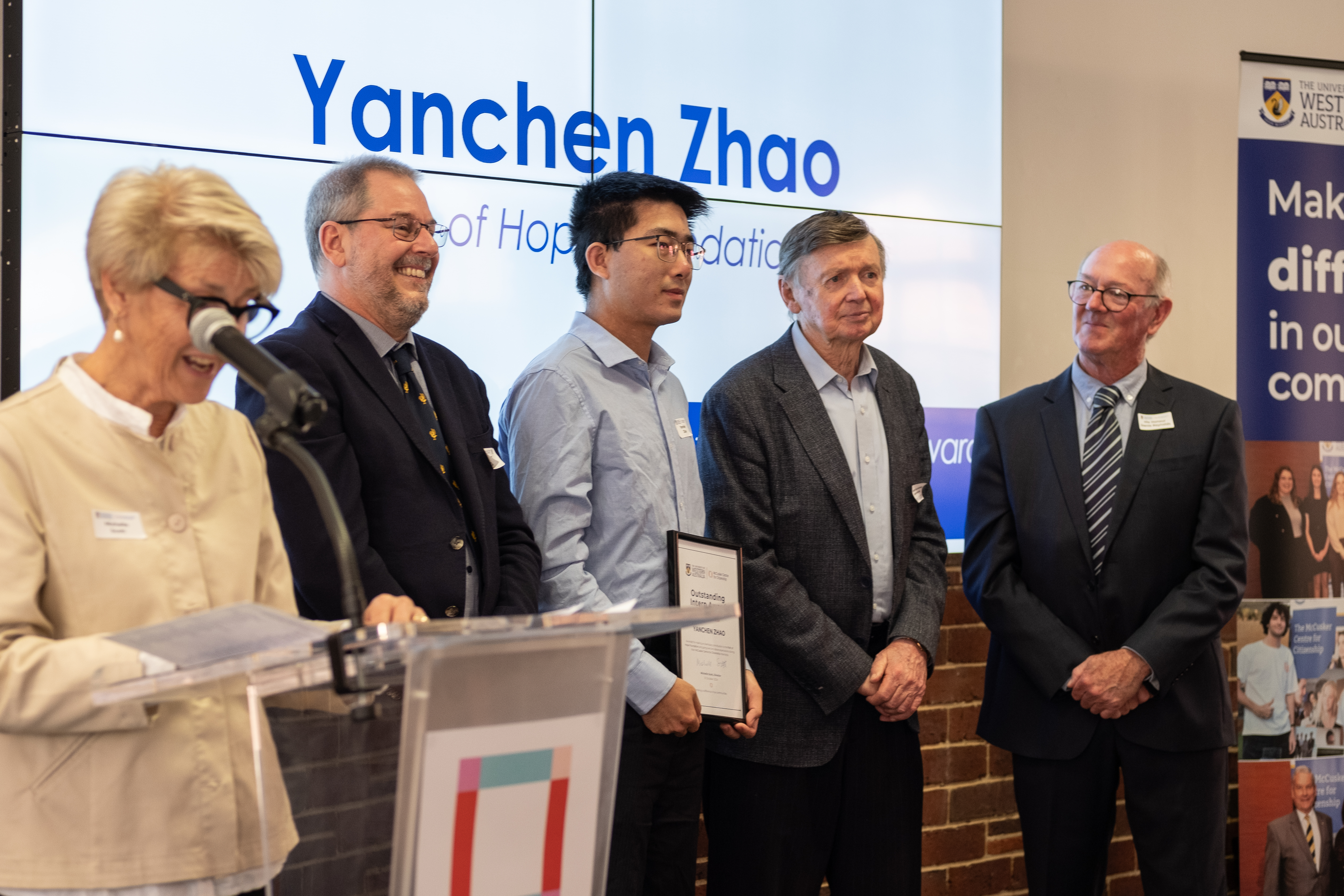 Yanchen, a UWA Master of Information Technology student, has been named as a recipient of the McCusker Centre for Citizenship’s Outstanding Intern Award for his contribution to the Path of Hope Foundation’s Hope Report.
